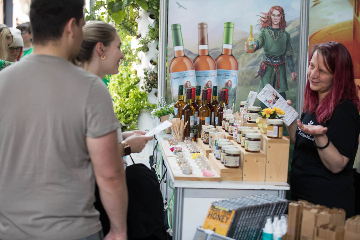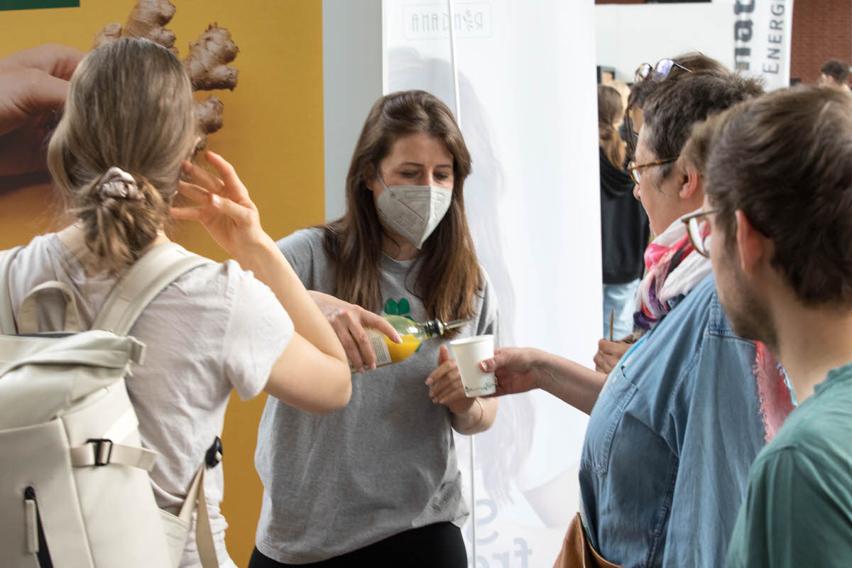 Das Publikum ist gemischt, tendenziell etwas jünger und grün angehaucht. Sicherlich ist der Anteil an Veganern auf dieser Messe relativ hoch, doch lauscht man den Gesprächen an den Ständen, so sind hier auch einige Besucher unterwegs, die erst noch in das Thema vegan reinschnuppern wollen. Und dafür ist diese Messe ideal. Viele Stände boten zu ihren veganen Lebensmitteln passende Proben an.